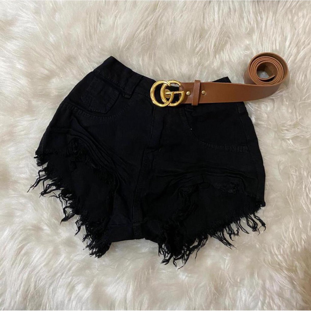 Product id: Short preto hot sale cintura alta desfiado