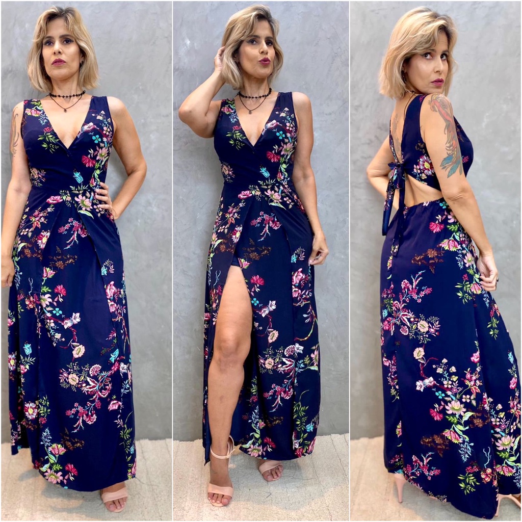 Product id: Vestido longo estampado com short hot sale por baixo
